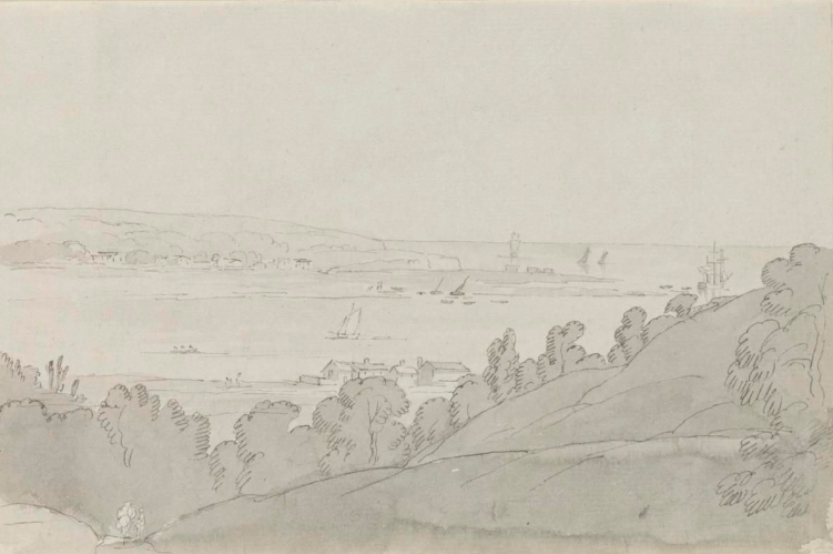 - John White Abbott (1764-1851), ‘Looking from above Starcross across the estuary of the river Exe’, pen and ink on paper, 1787. Royal Albert Memorial Museum and Art Gallery.