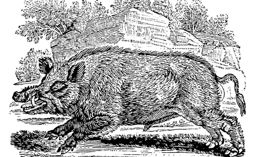 - Thomas Bewick (1753-1828), The wild-boar, illustration to Ralph Beilby’s ‘A General History of Quadrupeds‘, Newcastle-upon-Tyne 1790. https://www.porkopolis.org/pig_artist/thomas-bewick
