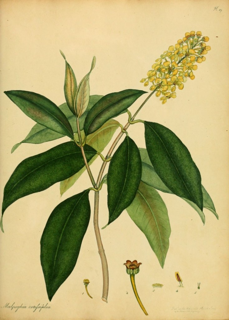 - Henry Cranke Andrews, The botanist’s repository, for new, and rare plants. Vol. 1, Plate 49, Malphigia crassifolia.