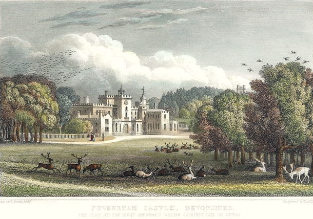- Powderham Castle, drawn by R. Brown and engraved by Thomas Hosmer Shepherd | published in History of Devonshire …, 1829. http://www.ancestryimages.com/proddetail.php?prod=g1819. Credit: ancestryimages.com.
